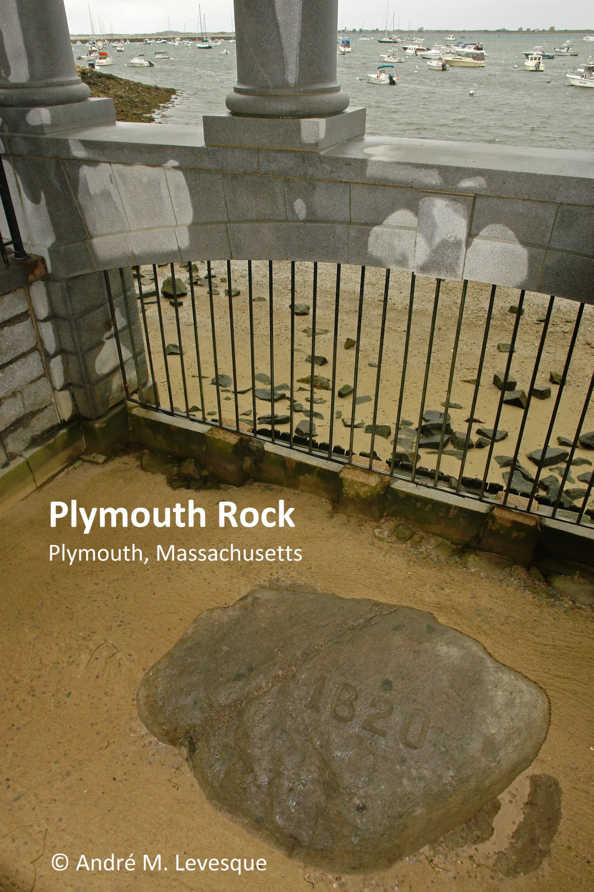 According to the Pilgrim Memorial State Park, "in 1774, at the start of the Revolution, the top half of the rock was moved. With revolutionary zeal and the help of 30 teams of oxen, the townspeople moved the top half to Town Square and displayed it as a monument to liberty. The top half was moved again, to Pilgrim Hall on Court Street, on the Fourth of July, 1834. The tide began to turn for Plymouth Rock in 1867 when the neglected bottom half was trimmed to fit within a new Gothic style granite canopy. Thirteen years later in 1880, the top half of the rock was brought down the hill from Pilgrim Hall and reunited with its base." During that same year, the date '1620' is carved on the surface, replacing painted numerals. In 1921, a new portico was built over Plymouth Rock to commemorate the 300th anniversary of the Pilgrims' landing. It was designed by the world-famous architectural firm of McKim, Mead and White and the Guastavino Company and built in the Neo-Classical Revival style to suggest permanence, stability and strength. As shown in the photograph, the portico was erected with metal grates at sea level to let the tide wash over it. In 1970, Plymouth Rock and the portico were listed in the National Register of Historic Places. When the Pilgrims first saw Plymouth Rock, it was more than three times larger than what you see today. According to the Commonwealth of Massachusetts' Department of Conservation and Recreation, this simple glacial erratic boulder remains a powerful icon and is "a symbol for the potential the Pilgrims saw in America" and "has become a world famous symbol of the courage and faith of the men and women who founded the first New England colony". "Seen as solid, steadfast and everlasting", the Plymouth Rock "is a suitable icon for the birth of a nation".