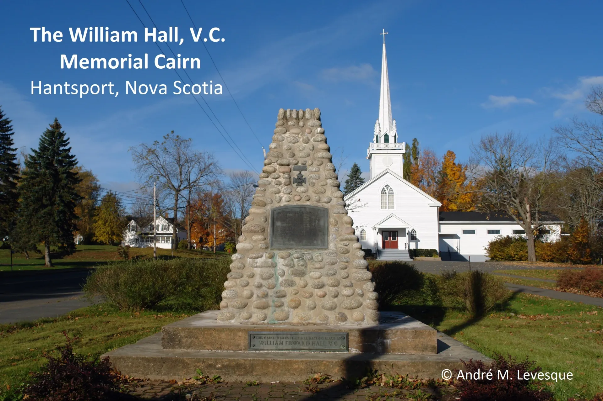 His final public recognition was in October 1901 when he was presented to Prince George, Duke of Cornwall and York (later George V) while in Halifax during a visit to Canada. Hall died three years later and was buried without honours in an unmarked grave at Lockhartville, Nova Scotia. In 1937, the Canadian Legion of the British Empire Services League launched a local campaign to have him recognized and eight years later, his remains were re-interred in the grounds of the Hantsport Baptist Church. As shown in the photograph, a memorial cairn was erected in 1947 to mark his last resting place.